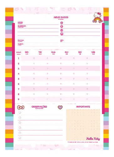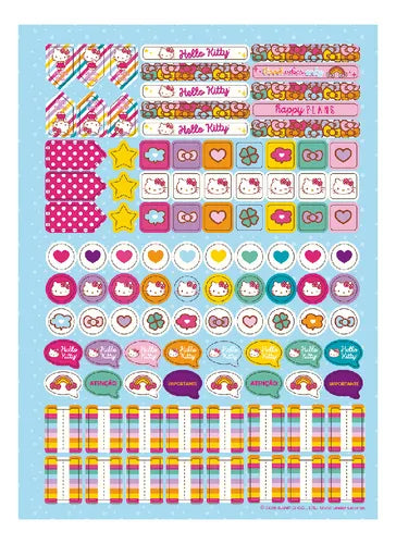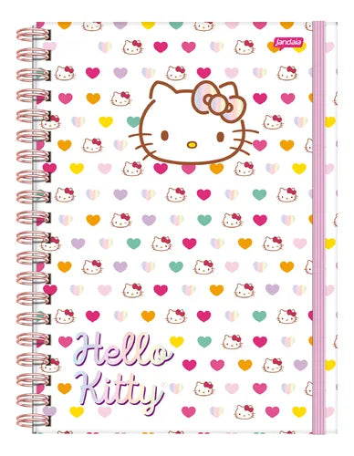 A capa dura deste caderno apresenta uma estampa delicada e alegre da Hello Kitty, cercada por corações e outros elementos adoráveis. As cores suaves e o design encantador trazem um toque de alegria e leveza para seus momentos de estudo, tornando a rotina mais prazerosa.